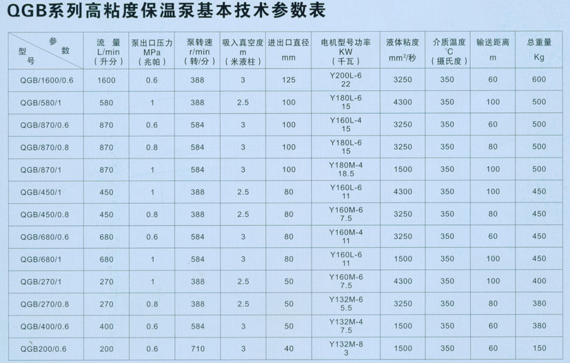 QGB高粘度保溫泵,3QGB高粘度瀝青泵,QGB保溫泵主要用于輸送高黏度的潤滑性液體,一般高工作溫度≤250℃。QGB保溫泵的高黏度介質一般通過加溫降黏后輸送,其黏度一般為3.0~760mm2/s。