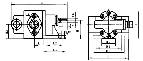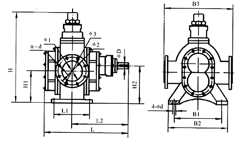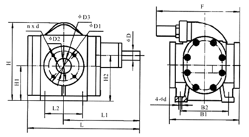 | 型號 | L | L1 | L2 | B1 | B2 | B3 | H | H1 | H2 | φ1 | φ2 | φ3 | n-d | φD | 4-φd |